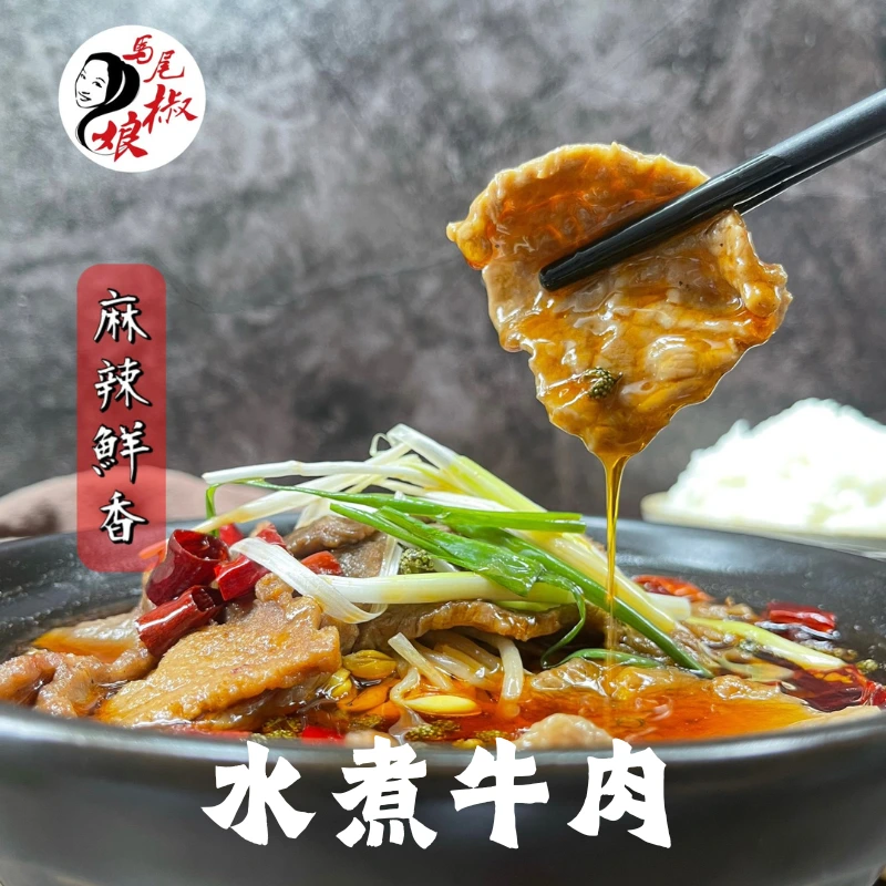 來自四川的經典名菜「水煮牛肉」,期特色「麻、辣、鮮、燙」特別選用~牛肉(裏脊肉)肉質較好口感滑嫩,再加入喜愛食材搭配,營養豐富健康美味。夏天吃過癮,冬天吃暖身,浸泡在一片紅豔豔的乾辣椒海,湯汁裡的鮮嫩牛肉加上花椒粒與乾辣椒,醞釀出麻香帶勁的湯頭,吃上一口,一股熱潮由舌尖直衝腦門,瞬間開啟你五臟六腑沉睡已久的味蕾