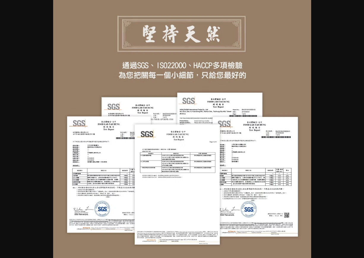 逼敏原警語:本產品含有大豆、小麥、麩質穀物類製品對此過敏者請避免食用。