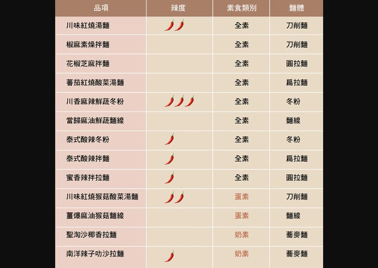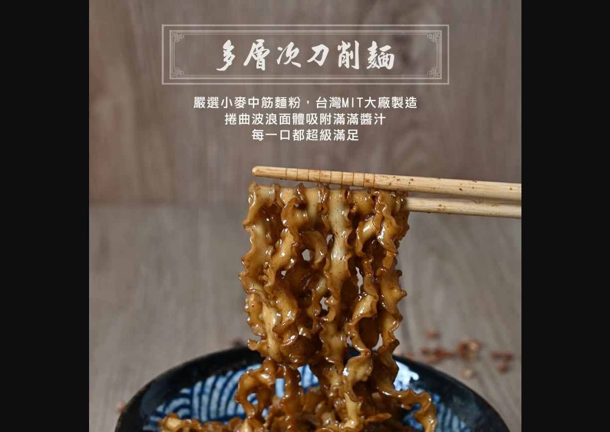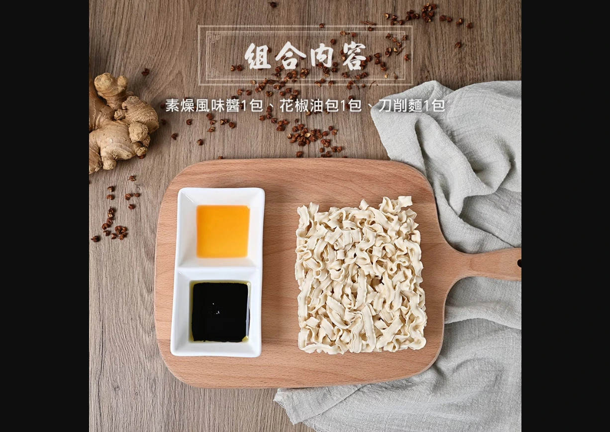 內容物:刀削麵體、素燥醬、椒麻油包